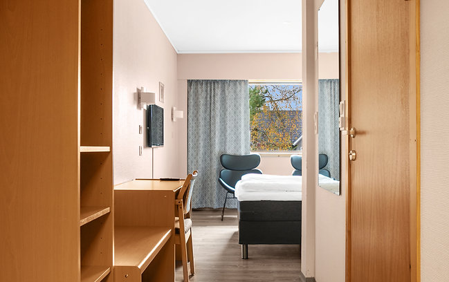 Våre enkeltrom er designet for den reisende som verdsetter både funksjonalitet og komfort.